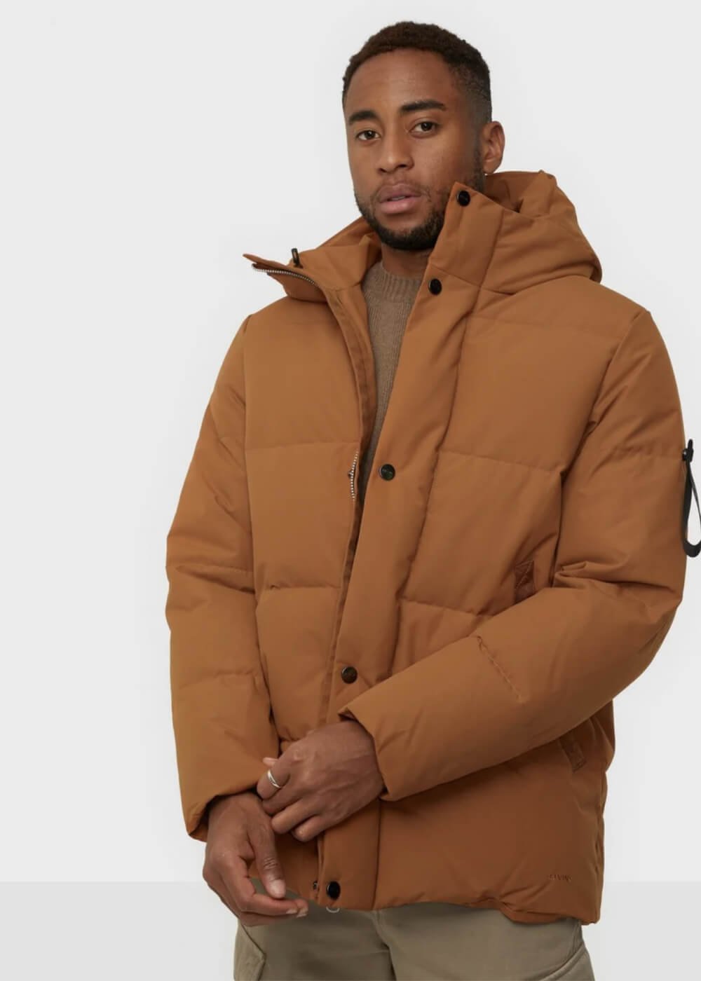 • • Calvin Klein logo patch on the sleeve