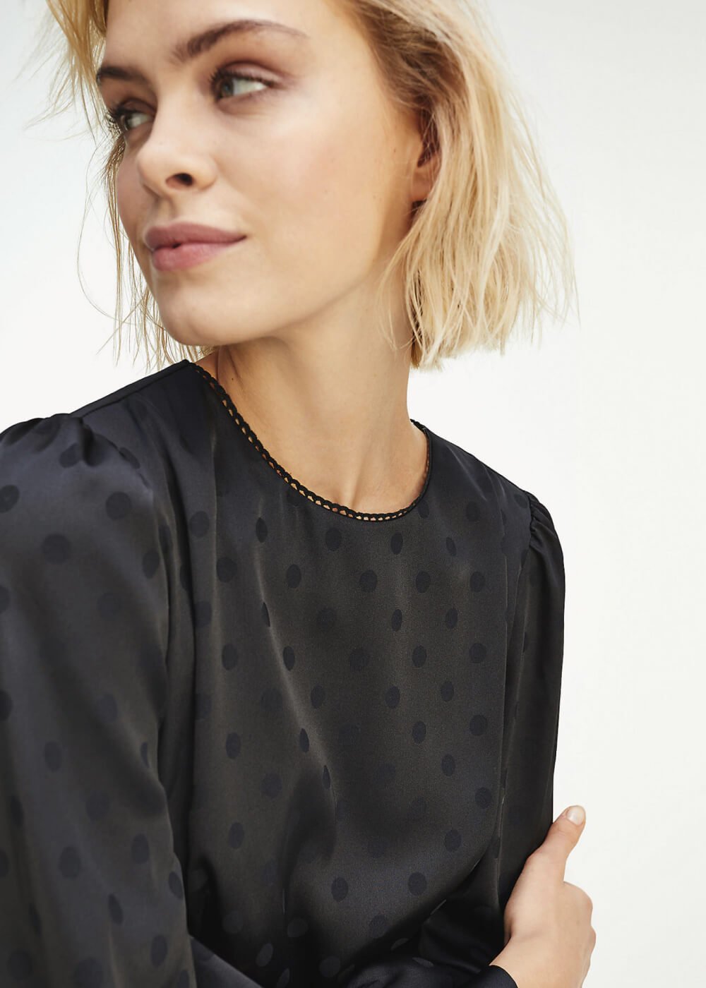 • • zipped neckline